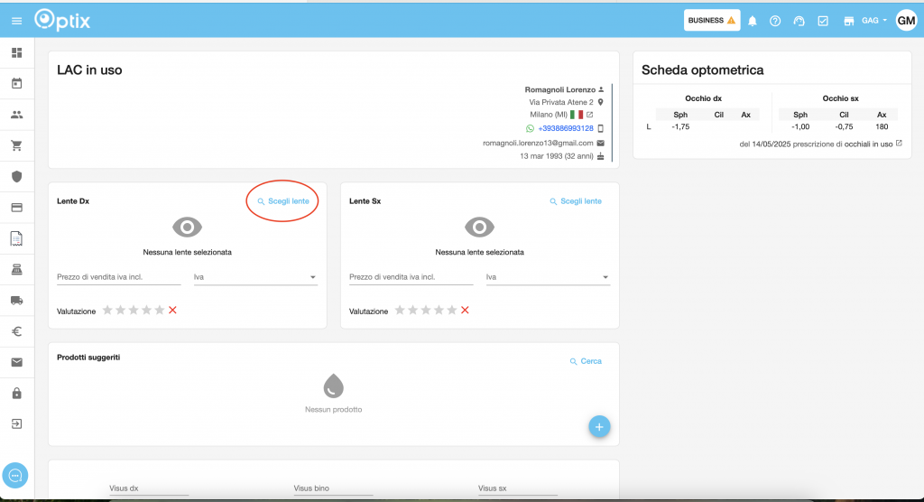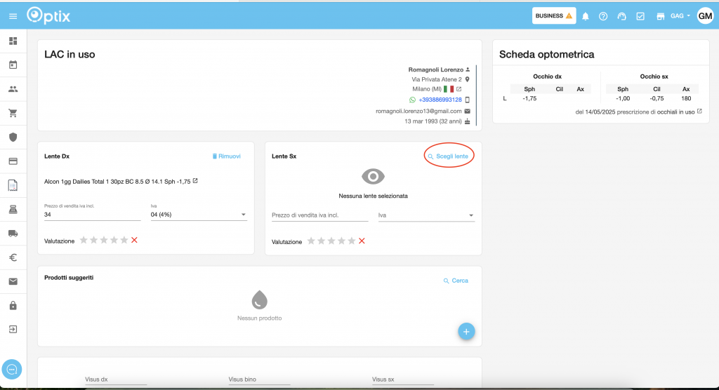 1- anagrafica (https://wiki.ilop.com/3-optix-anagrafica/) richiamiamo il cliente