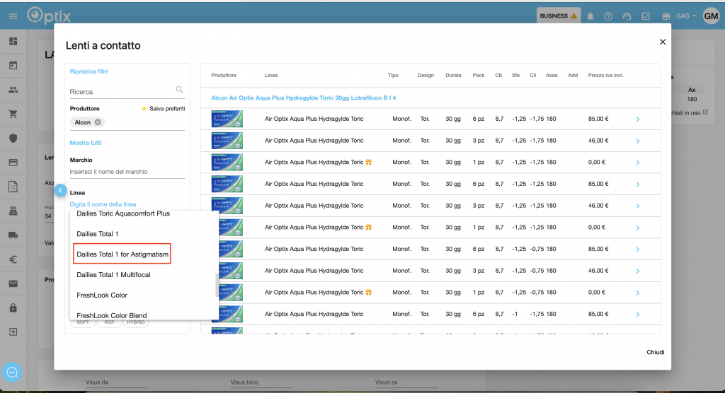 -opzione 1 – lente della stessa tipologia (marca, linea, tipologia (sferica/toric/mf)